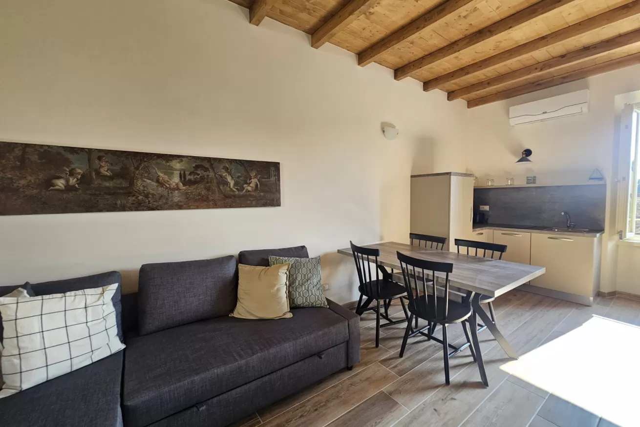 Si compone da ampia zona giorno con tv ,divano letto angolare,cucina.