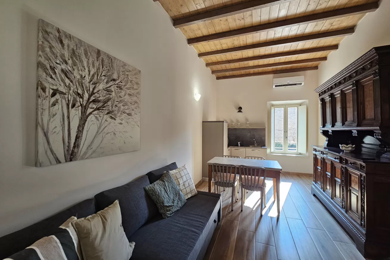 Si compone da ampia zona giorno con tv ,divano letto angolare,cucina.