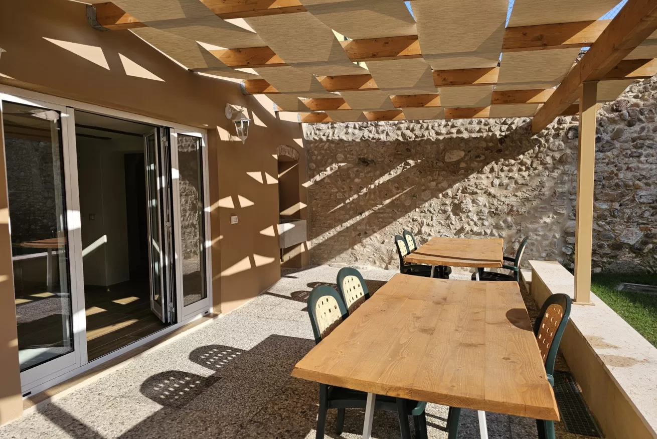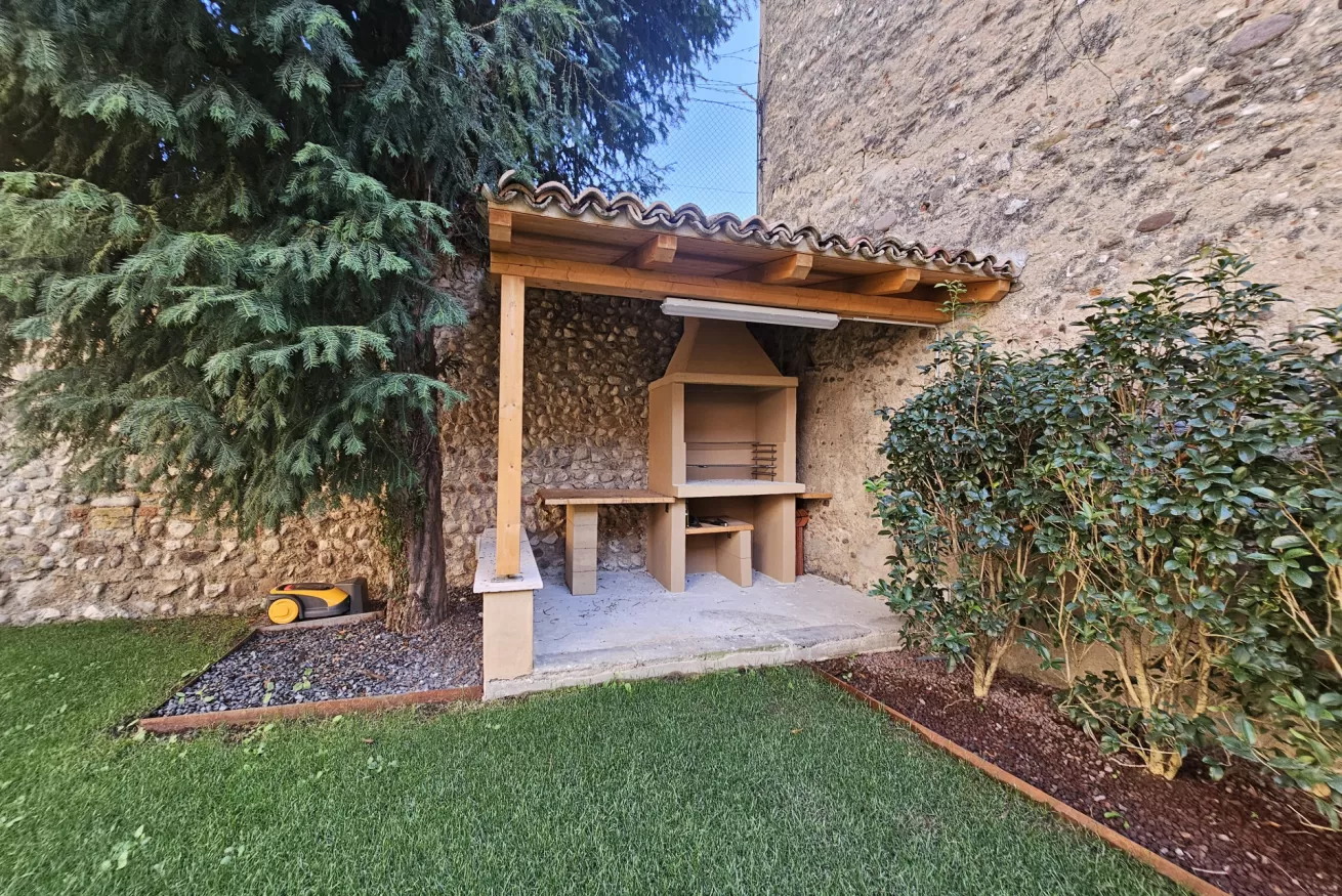 Al piano basso troviamo un ampio giardino condomiale,comune a tutti e tre gli appartamenti,dotato di tavoli per pranzare/cenare fuori,zona con prato e sdraio dove potersi risposare,zona BBQ in muratura.