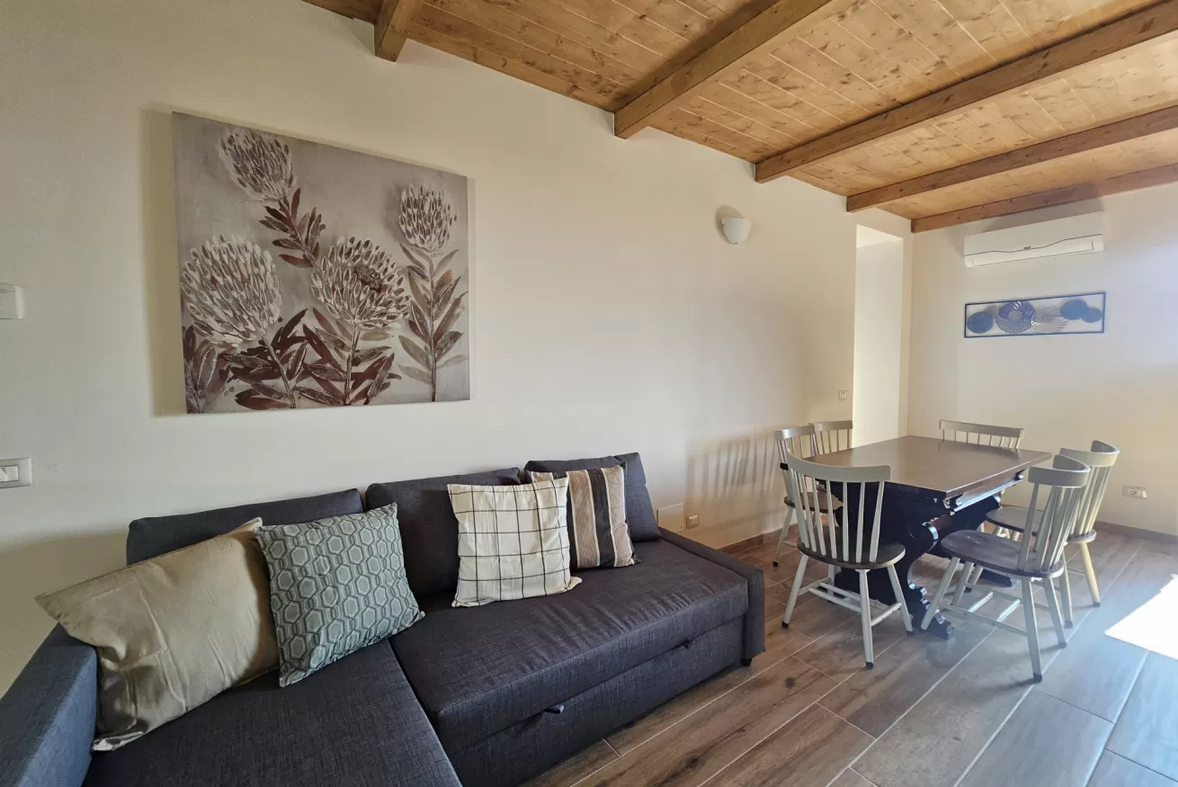 Si compone da ampia zona giorno con tv ,divano letto angolare,cucina.
