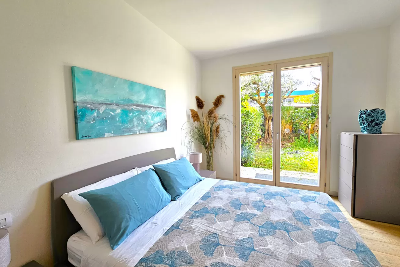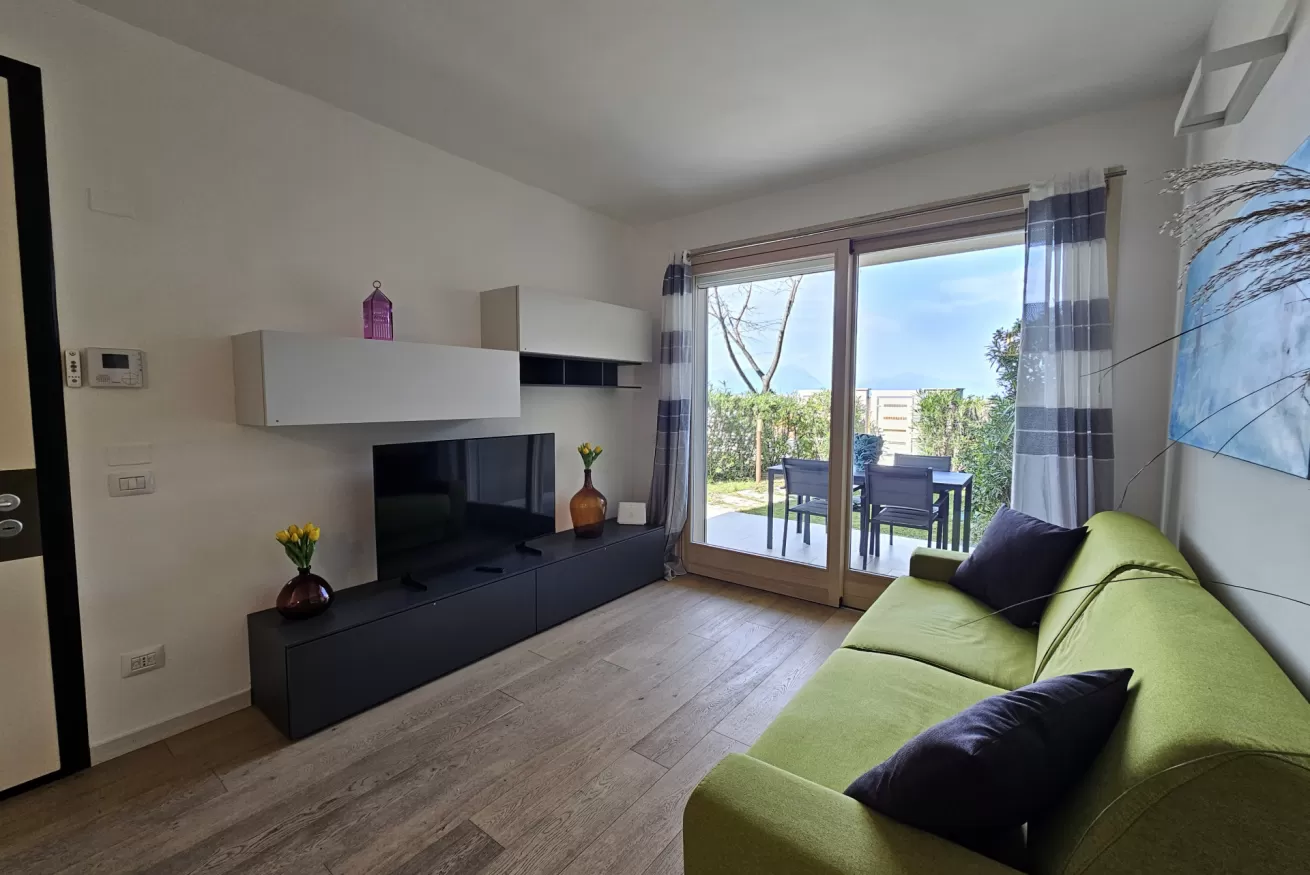 L’appartamento è dotato di un posto auto privato,parziale vista lago dal giardino.